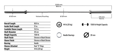 VTX HYBRID OLYMPIC BAR-CHROME is built for serious lifters who demand durability, precision, and smooth performance. Designed with needle bearings, this bar provides a seamless spin, making it ideal for Olympic lifts and powerlifting. The 28mm shaft diameter ensures a comfortable grip, while the chrome or black chrome finish enhances durability and resistance to wear.