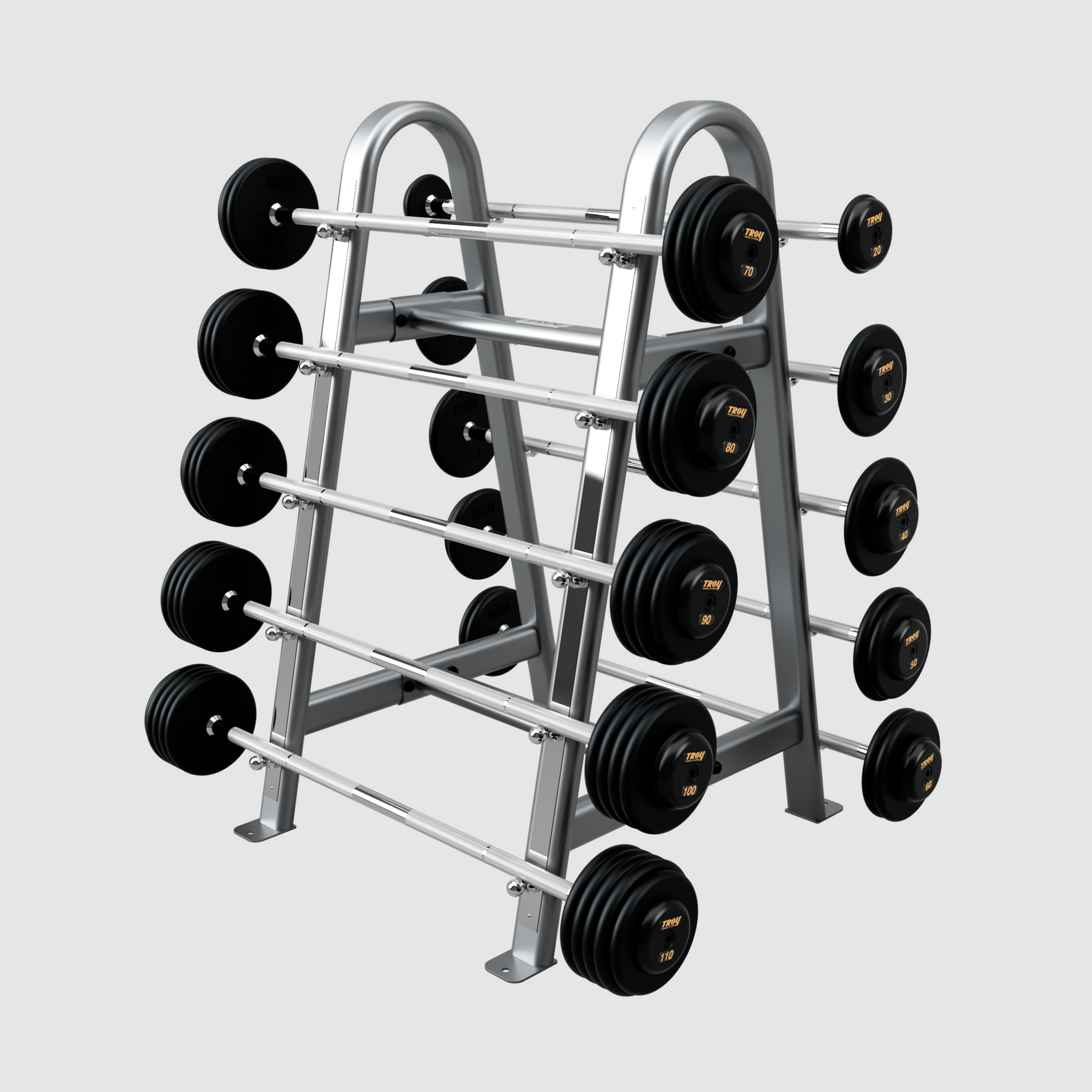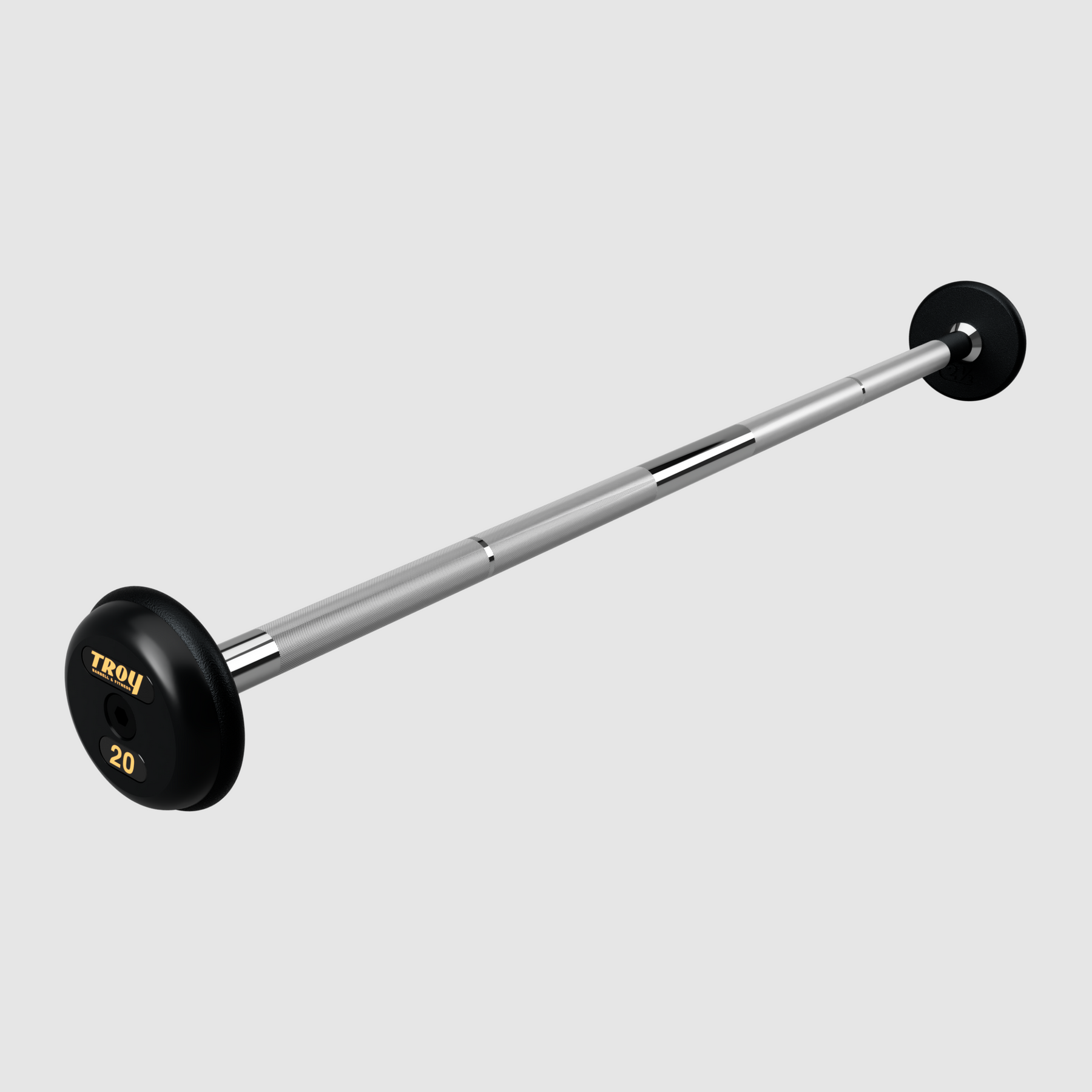 The TROY Pro Style Barbell is pre-assembled to meet the standards required for any commercial application. All of our pro style barbells use solid steel bolt design. These barbells consist of straight or curl bars and feature deep set knurling for functional performance and top-of-the-line TROY high grade Hammertone plates, premium black